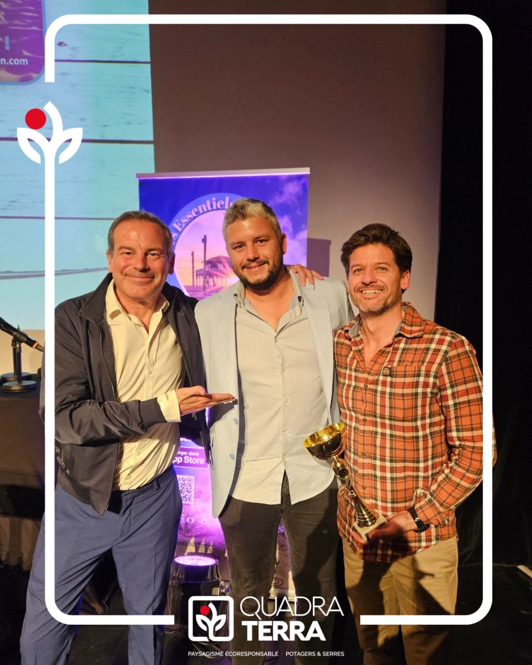Amaury Fatoux, Directeur Général de Quadra Terra, a eu l’honneur de remettre à son tour un trophée à une entreprise engagée du territoire, CKOM9 avec Cédric Lhoir.
